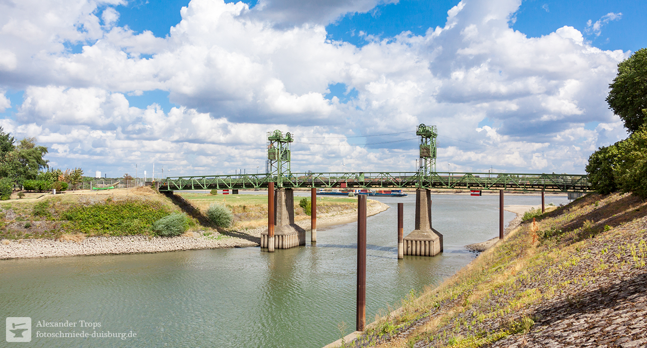 Sie überquert die Einmündung in den Rheinpreussenhafen in Duisburg-Homberg.