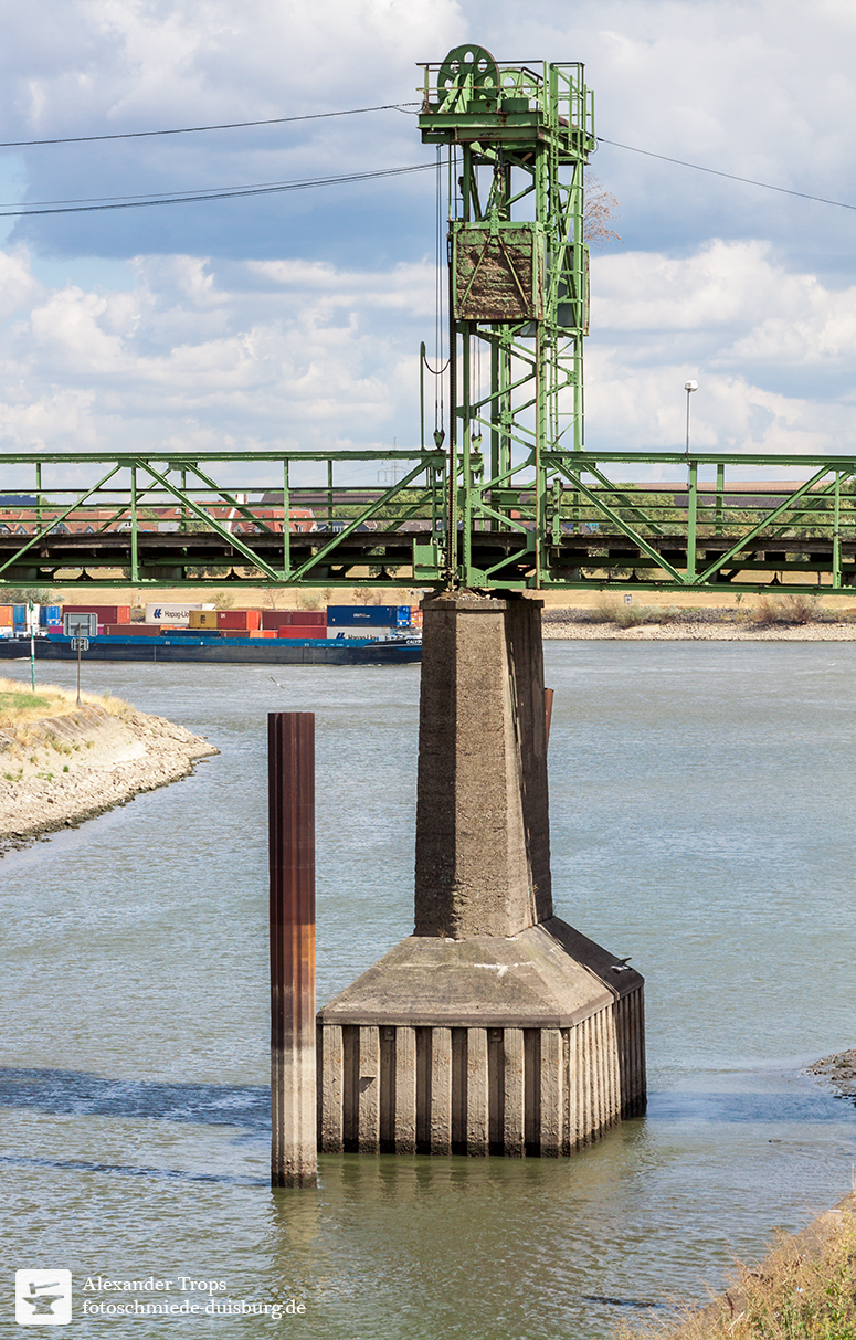 Im Hintergrund des Bildes kann man noch die andere Rheinseite (Duisburg-Laar) erkennen.